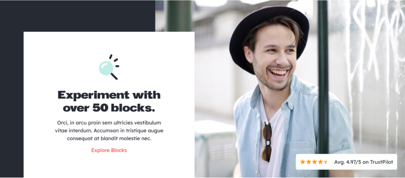 Select from over 100 sections across 15 categories to create the perfectly tailored page.